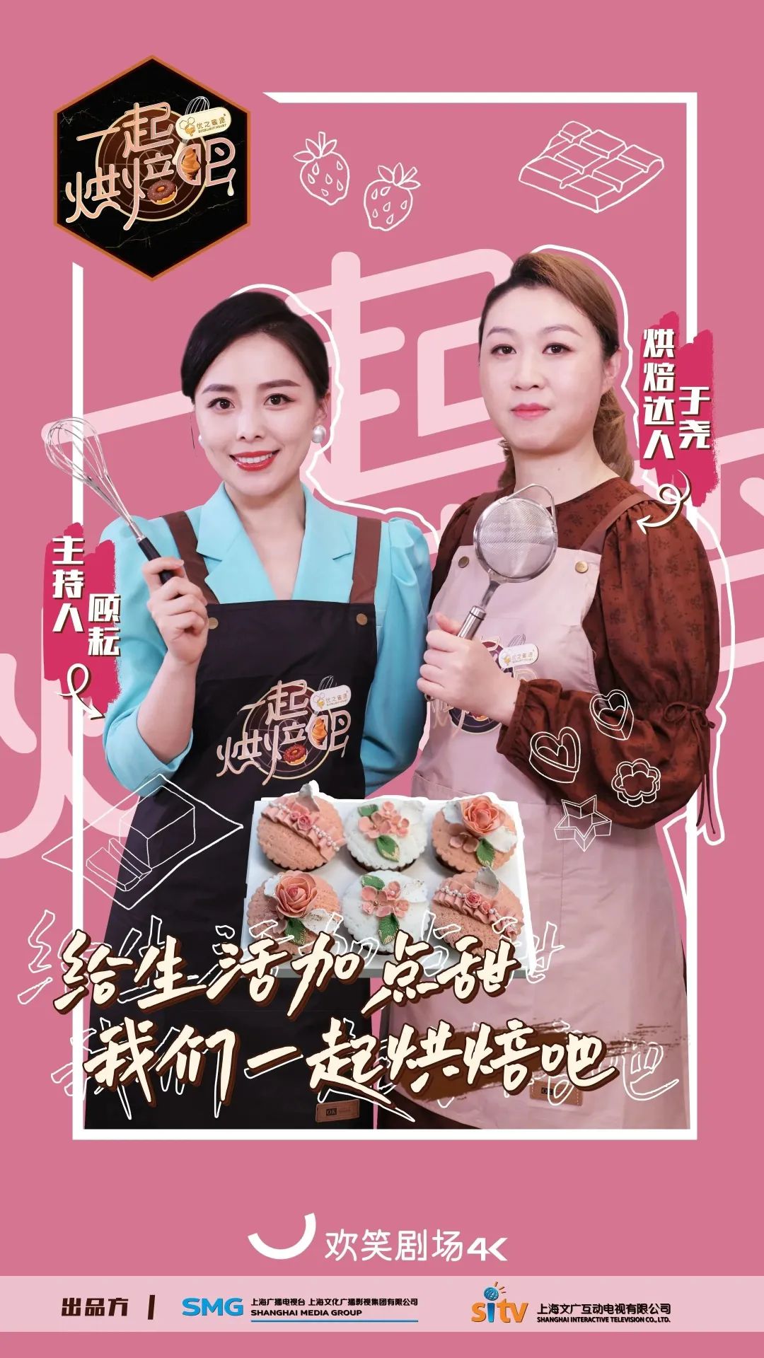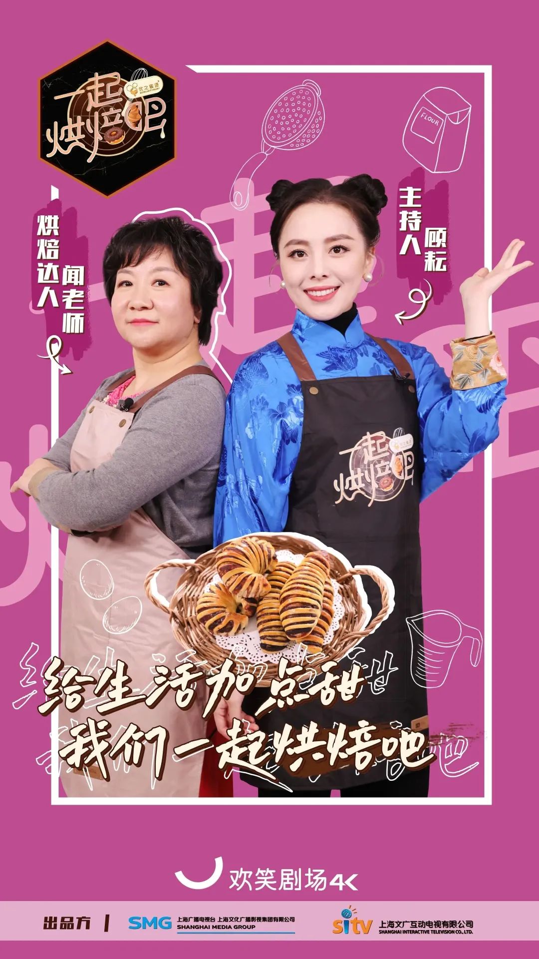《一起烘焙吧》是继《国厨来了》后,又一档在4K超高清频道欢笑剧场播出的4K超高清自制节目。《国厨来了》让大家体会到“食不厌精脍不厌细”的精致国宴料理,那么这档最新的诚意之作《一起烘焙吧》,将在之后3个月的时间里,带领大家一起进入美妙的甜品世界,用美味甜品和温暖故事陪伴你度过这个冬天。