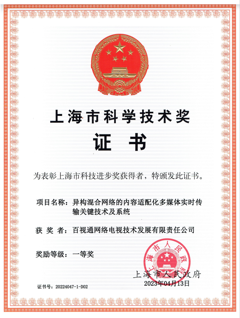 近日,2022年度上海市科学技术奖励大会召开,隆重表彰为国家、上海科技事业和现代化建设作出突出贡献的科技工作者。百视通与上海交通大学等产学研单位联合申报的“异构混合网络的内容适配化多媒体实时传输关键技术及系统”项目荣获上海市科技进步奖一等奖。