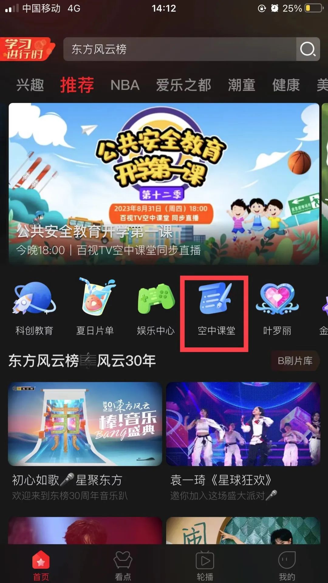 第二步:点击空中课堂图片进入点播专区。