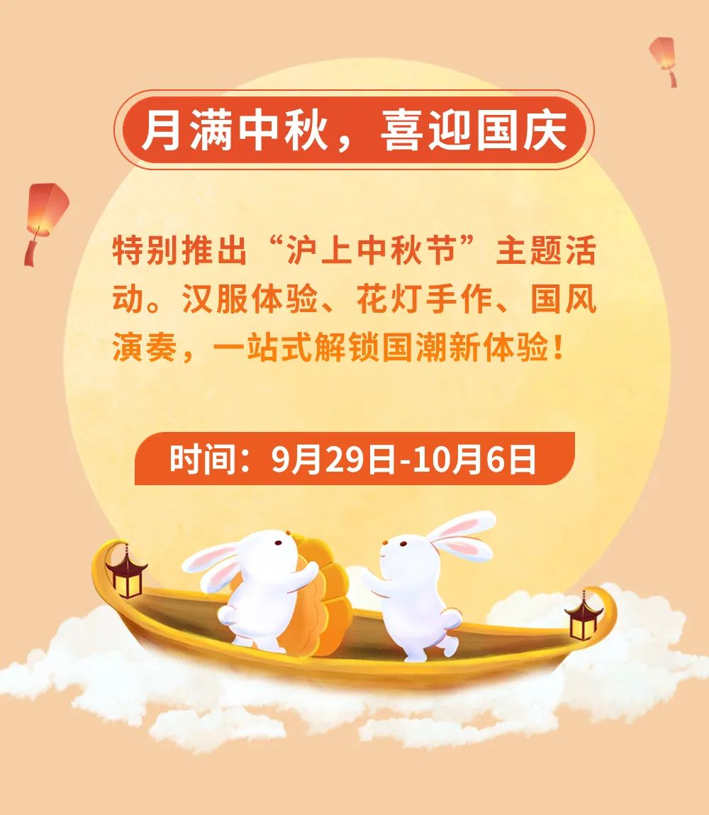 中秋国庆假期,东方明珠电视塔开园时间提前至8:30,特别推出“沪上中秋节”主题活动,汉服体验、花灯手作、国风演奏,一站式解锁国潮新体验!10月1日晚18:58,东方明珠电视塔塔身点亮“国庆色”热烈庆祝中华人民共和国成立74周年,引领申城华灯共开启。一起来玩转明珠塔吧!