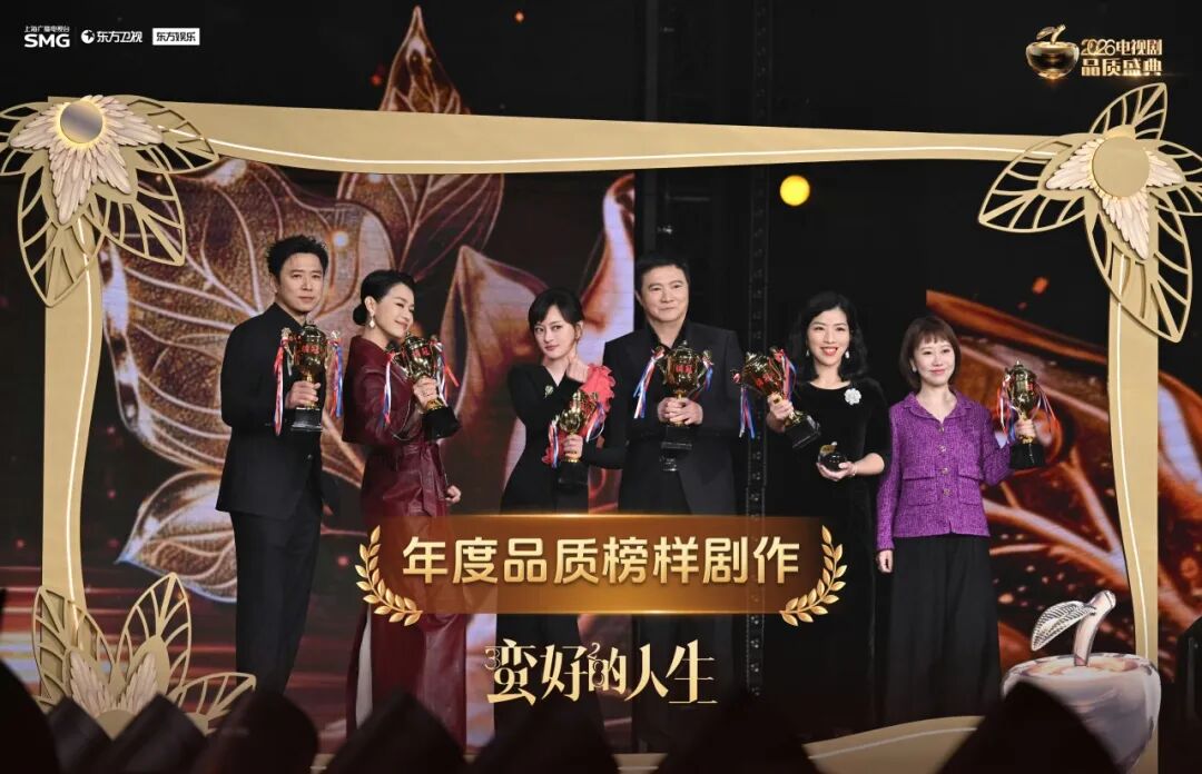 剧耀东方 2026电视剧品质盛典 星光聚首,品质铸魂!昨晚,2026上海影视创制大会系列活动——《剧耀东方•2026电视剧品质盛典》在东方卫视播出。各大剧组主创齐聚现场,共赴荣耀之约,摘得属于他们的“品质之果”。 由上海广播电视台荣誉呈现,中央电视台、东方明珠旗下尚世影业、优酷联合出品的都市民生话题剧《蛮好的人生》大放异彩,一举斩获“年度品质榜样剧作”“品质静安年度荣誉剧作”两大重磅剧集奖项,同时包揽“年度卓越品质之星(孙俪)”“年度品质演绎剧星(胡杏儿、高鑫)”“年度品质导演(汪俊)”“年度品质原创编剧(费慧君)”五项主创荣誉,以7项大奖的亮眼成绩,成为本届盛典当之无愧的品质赢家与剧集标杆。