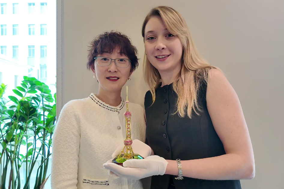 APD公司市场与公关总监Anastasia Pankova代表NMG集团接受了礼物,并表示一定会将这份珍贵礼物作为中俄友谊的见证,陈列在集团的重要场所,祝愿双方合作如东方明珠般璀璨闪耀,如克里姆林宫般稳固坚实。