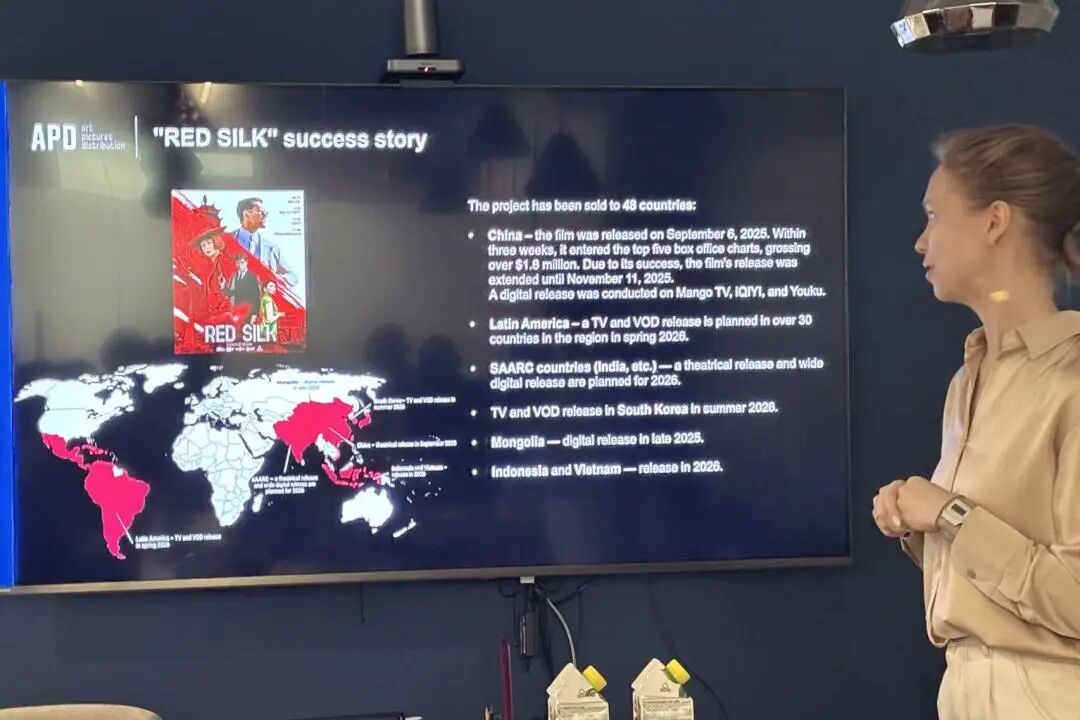 APD国际发行部高级经理Anna Vedrova分享了APD近期主推的作品,其中重点介绍了中俄影视合作的重要成果——电影《红丝绸》,这部作品是“中俄文化年”框架下的重点合拍谍战大片,对推动中俄新时代全面战略协作伙伴关系发展具有重要文化意义。影片已于2025年9月在中国上映,在中国内地票房突破180万美元,并在芒果TV、爱奇艺等平台开展数字发行。目前,该片的续集《黑丝绸》正在筹备中,影片将提升中国元素的占比,计划于2027年春季上映,现已开放联合制作与选角合作通道。