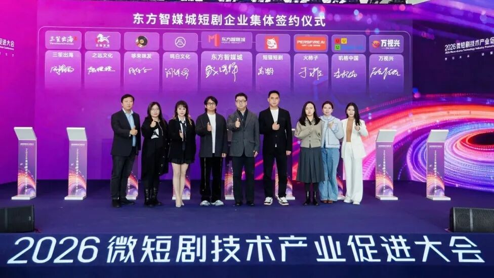 头部企业集聚:著名作家却却团队正式签约落户;三笙出海、鸣白文化、之远文化等一批头部微短剧企业集中签约。各方将共同探索“技术+内容+渠道+出海”联动模式,依托园区提供的多语种译制、海外发行及国际推广支持,助推中国微短剧精品扬帆出海。